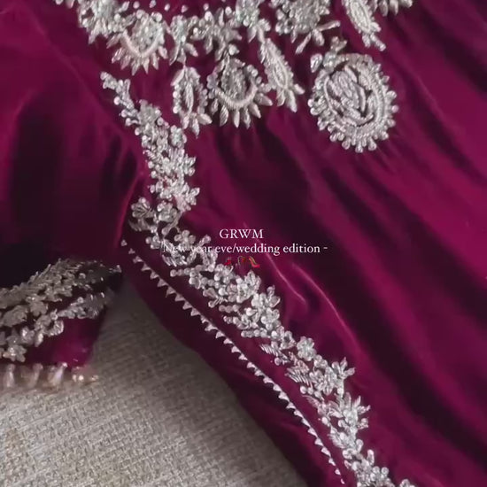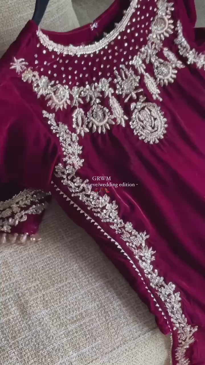 2025 Velvet Winter Exclusive 3 Piece Pant Set with Sequence Embroidery