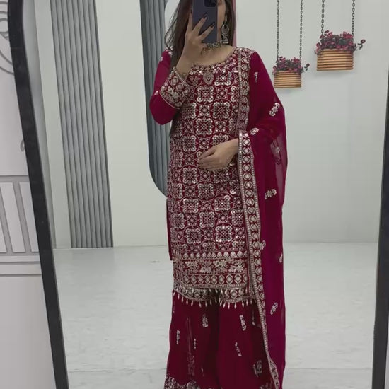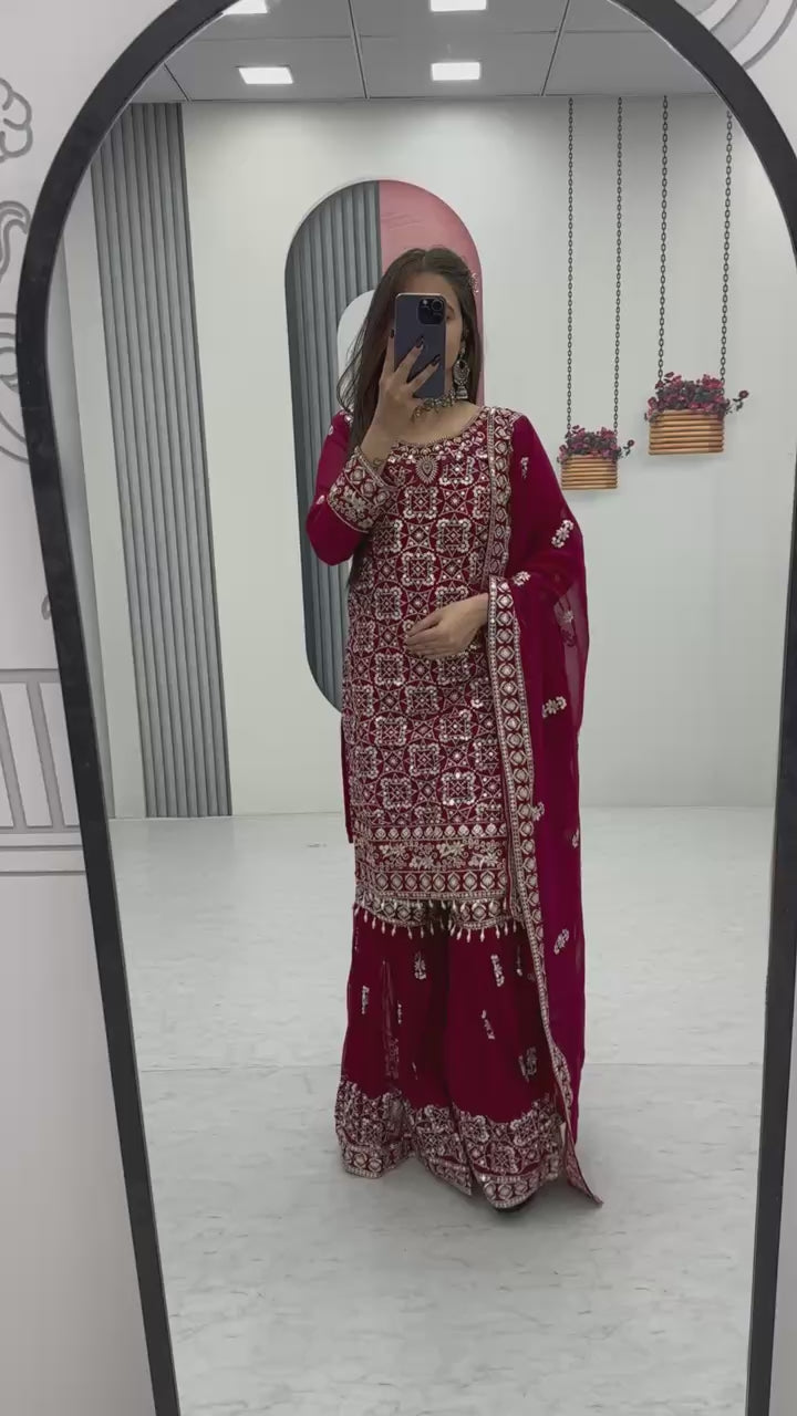 Aqua Green Designer Party Wear Tunic Sharara & Dupatta Set