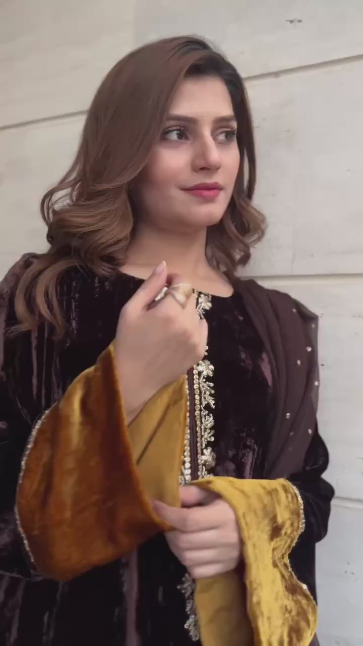 Designer Winter Velvet Plazzo Three Piece Set Women Embroidery Style