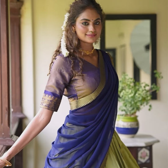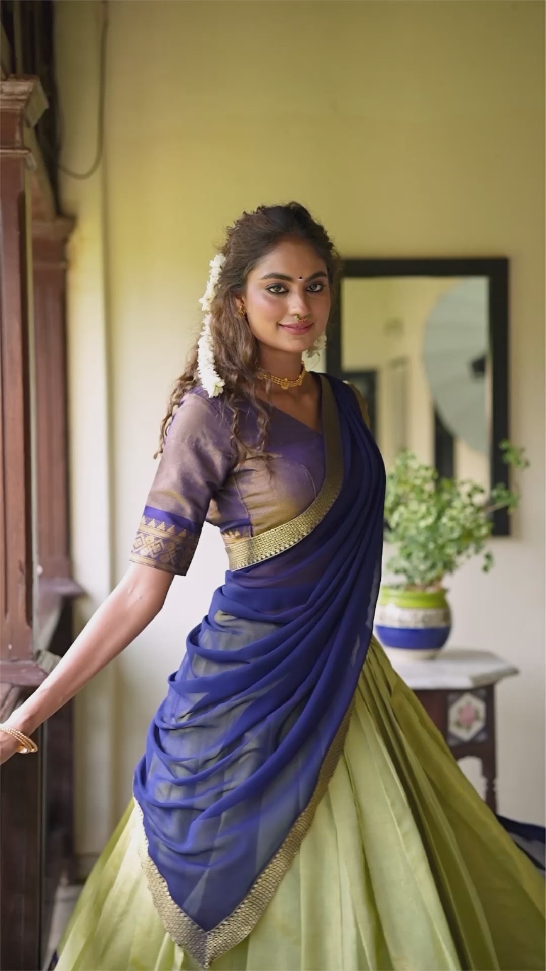 Lace Bordered Weave Work Kanchipuram Lehenga Choli Set
