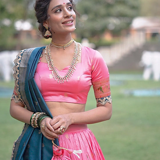 Gorgeous Pink Jacquard Silk Paithani Lehenga Set