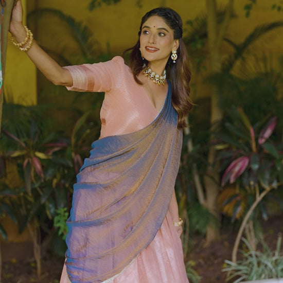Light Pink Silk Lehenga Choli with Zari Weaving Work
