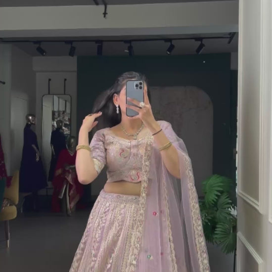 Light Pink Sequins and Thread Embroidery WorkLehenga Choli