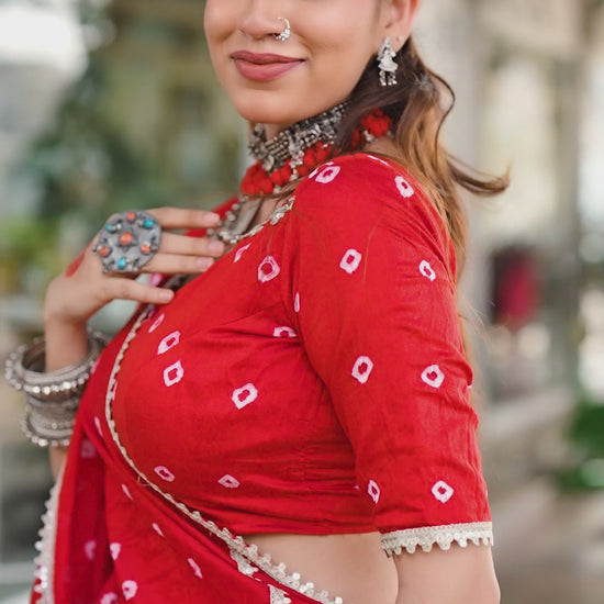 Red Pure Chanderi Bandhej Print Lehenga Choli