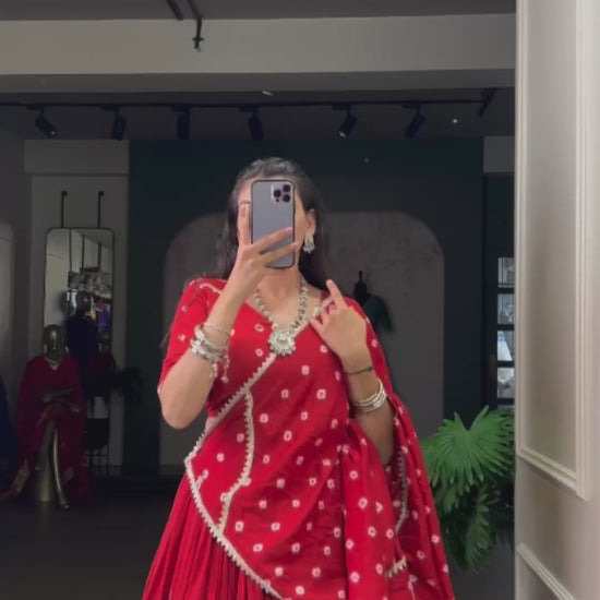 Deep Red Pure Chanderi Bandhej Print Lehenga Choli