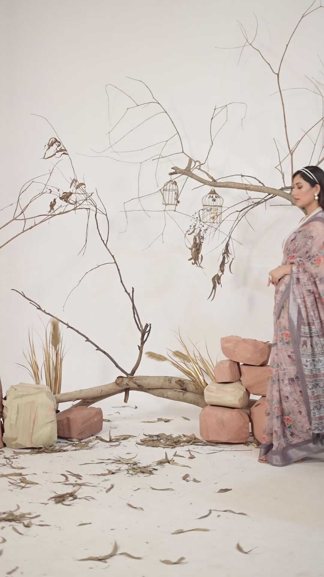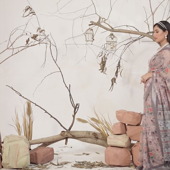 Elegant Digital Floral & Geometric Print Premium Linen Cotton Saree