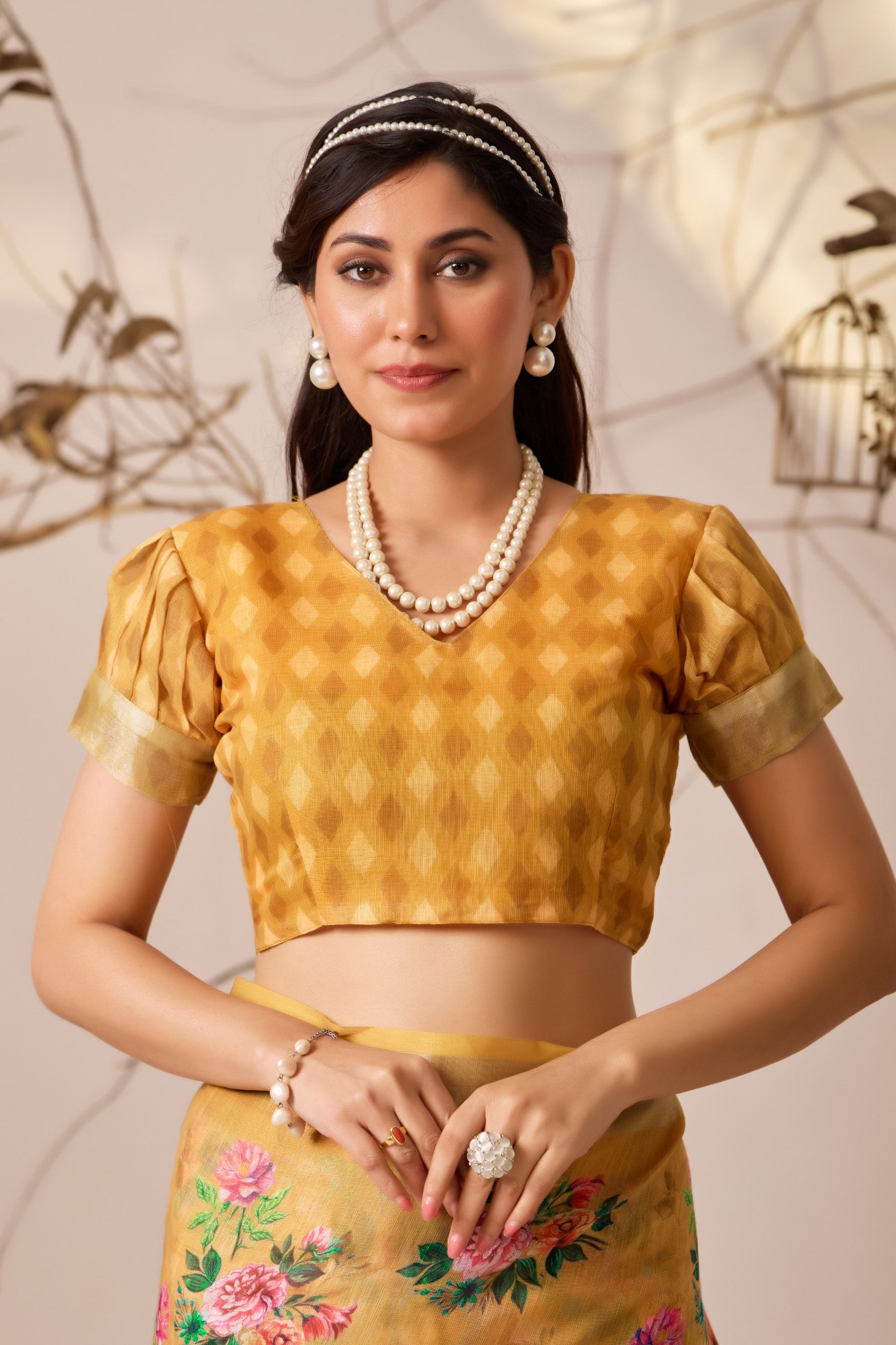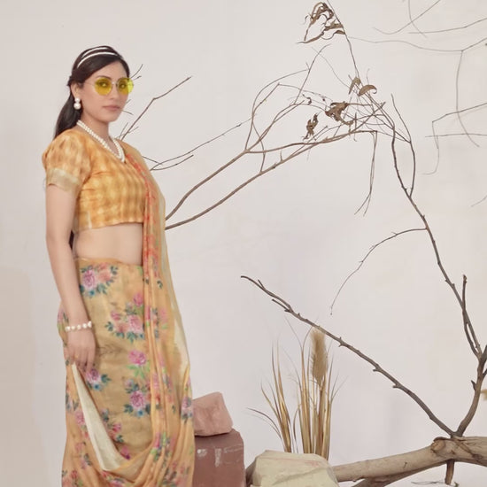 FABRIC: Premium Linen Cotton Saree with Elegant Digital Floral & Traditional Patola Style Print with Classic Contrast Border (5.5 Mtr Saree)