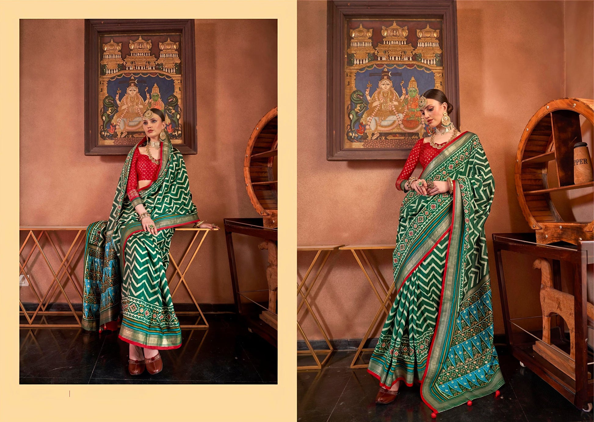 Ethnic Traditonal Patola Silk Saree in Green Color