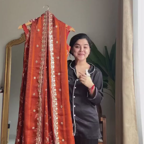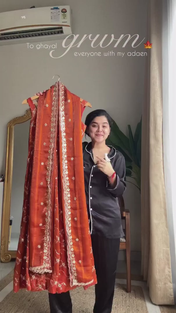 Radiant Elegance Burnt Orange Embroidered Anarkali Suit Set