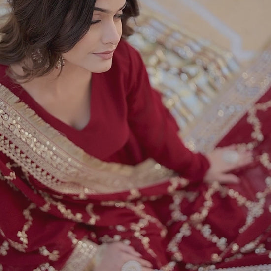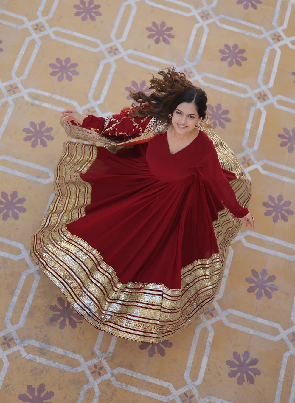 Red Premium Faux Blooming Sequence Embroidered Gown With Dupatta Set