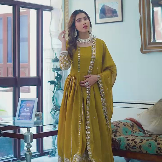Anarkali Set with Dupatta in Mustard Yellow Color