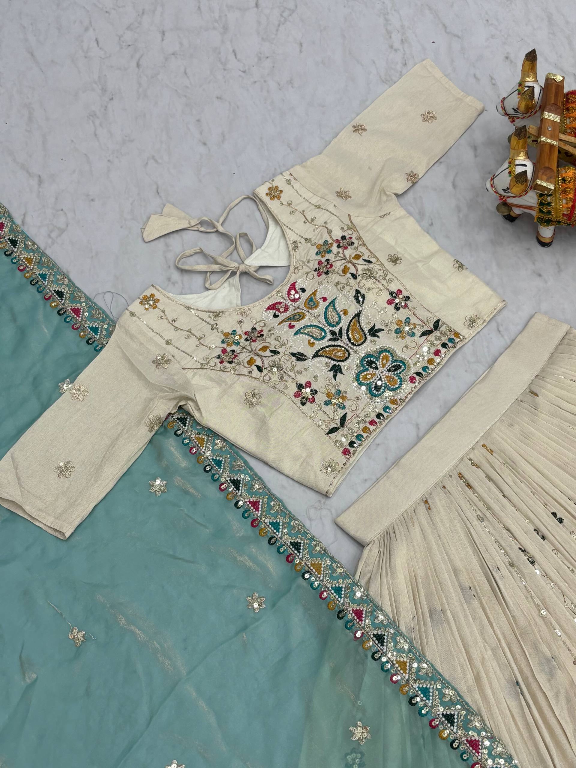 Pure Tissue Silk Festive Lehenga with Fully Embroidered Blouse